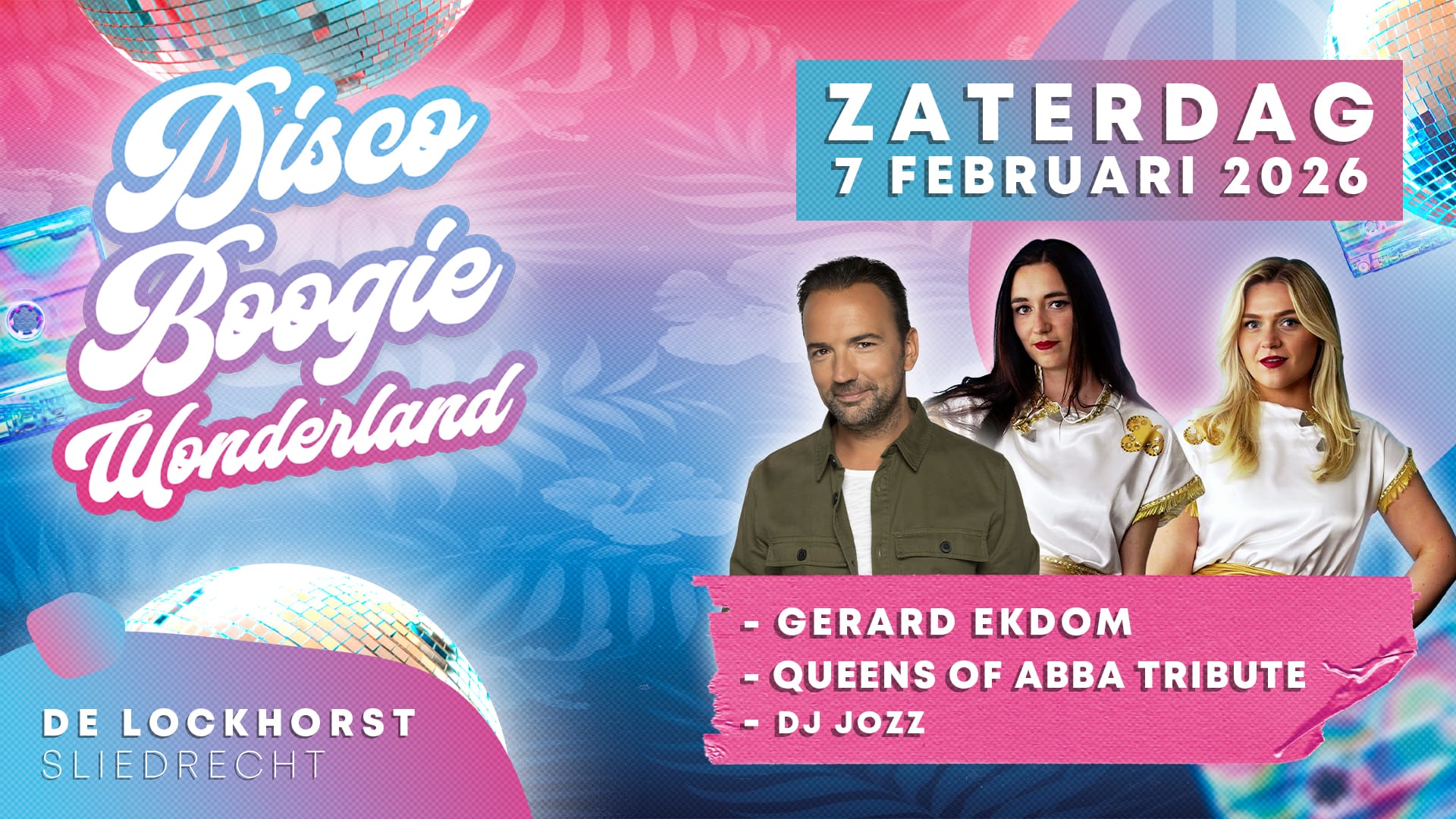 Terug naar de gouden tijden; de 70’s en 80’s, we nemen je mee naar de tijd van DISCO op zaterdag 7 februari 2026. Stil staan is geen optie tijdens Disco Boogie Wonderland.